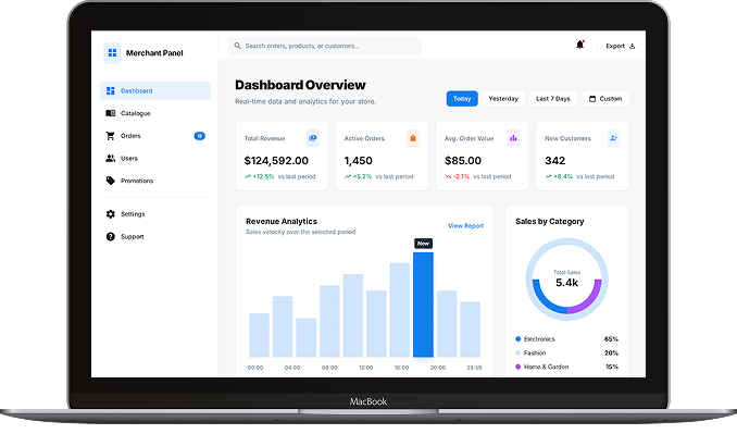 A powerful admin dashboard to track orders, manage users, run promotions, and access real-time sales analytics.