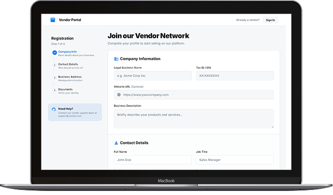 - Seller onboarding and verification